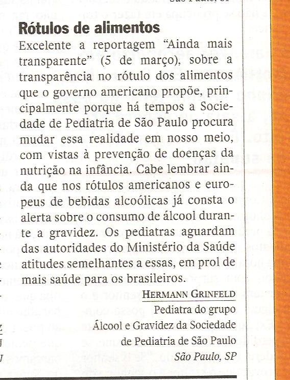 Carta do Dr. Hermann Grinfeld, publicada na Revista VEJA (Março/2014)