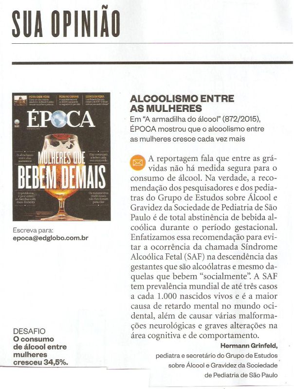 Carta do Dr. Hermann Grinfeld, publicada na Revista Época (872/2015)